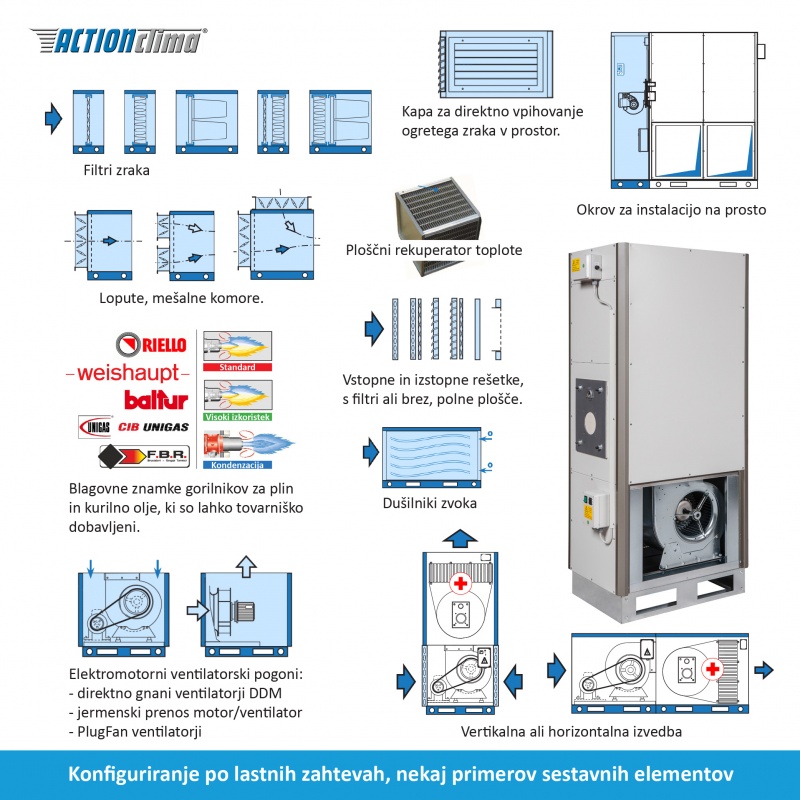 Največja prednost generatorjev toplega zraka ACTIONCLIMA je popolna modulna prilagoditev in sestava po zahtevi projekta.